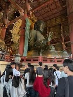 奈良公園では、ガイドさんから説明を受けながら大仏を見学しました。